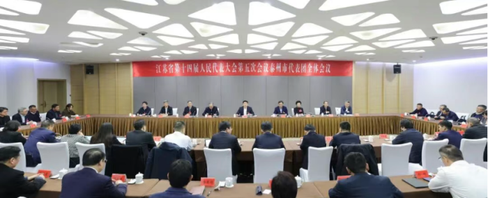 2日晚,泰州市代表团在驻地召开全体会议,市委书记姜冬冬主持。会议传达学习了省两会党员负责同志会议精神。会议推选姜冬冬为泰州市代表团团长,万闻华、张余松、周恒新为代表团副团长,审议了省十四届人大五次会议主席团和秘书长名单(草案)、大会议程(草案)。
